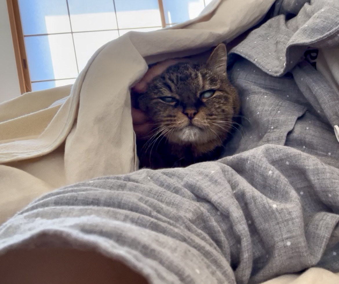 気づいたら私はぐっすり2度寝していて、2度目に目覚めたときにはしみこが懐で寝ていました。